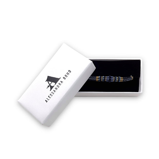Pulsera Hombre Color Azul Cobalto con Miyuki y Plata con Baño de Rutenio